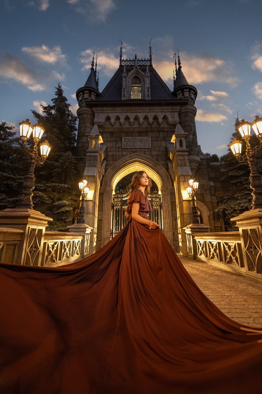 Платье с длинным шлейфом