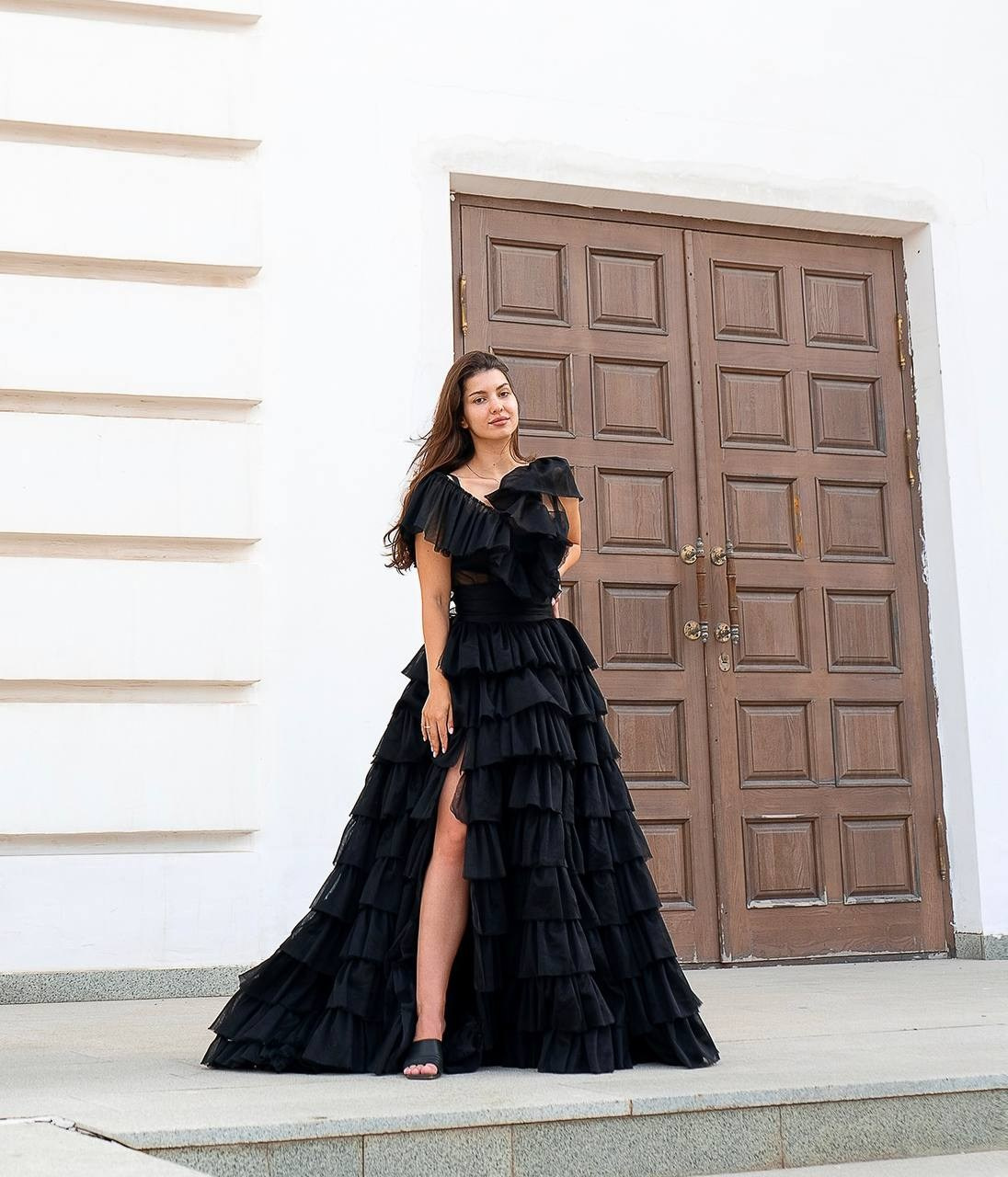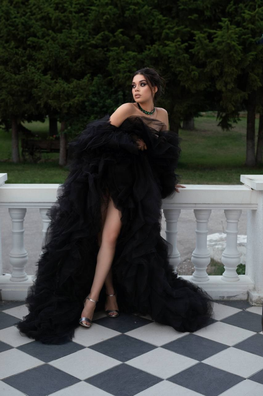 Платье с длинным шлейфом в шоколадном цвете